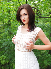She drops all of her clothes to show off her teen booty in some neat poses on the lap of nature, where she has some fun.