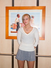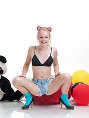 Uber cute and adorable blonde with teen looks, petite body, undeniable erotic appeal.