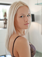 Dominika Sand strips naked in her lonely kitchen