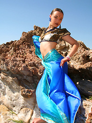 Strips her colorful flowing dress in a variety of pleasantly uninhibited explicit images in a diverse range of poses, Sharon is truly a striking
