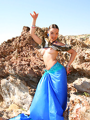 Gorgeous teen honey stripping and posing in the nude with lucky aborigine on the seaside.