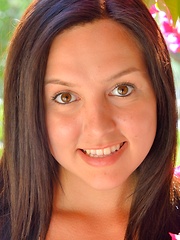 Fresh and sweet brunette with pale complexion and pink fleshy assets.