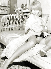 Loretta A sensually strips off her sexy black dress that shows off her body's slim figure before posing with sultry, enchanting eyes on top of th